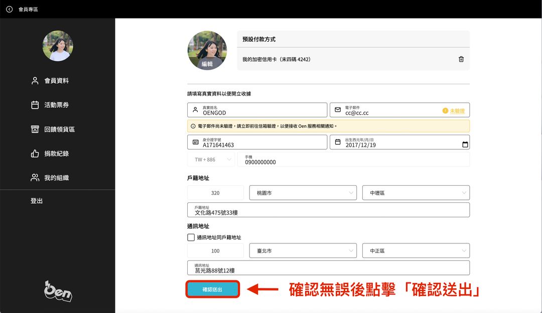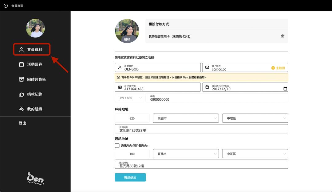 1.登入Oen應援會員專區。