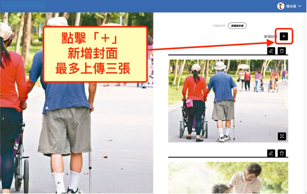 2.點擊「+」,新增封面,最多只能上傳三張。
