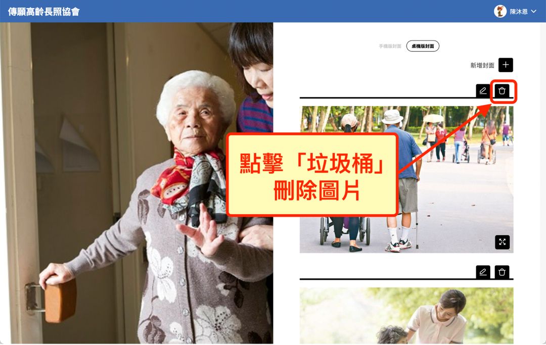4.若想刪除封面圖片,點擊「垃圾桶」,即可刪除圖片。