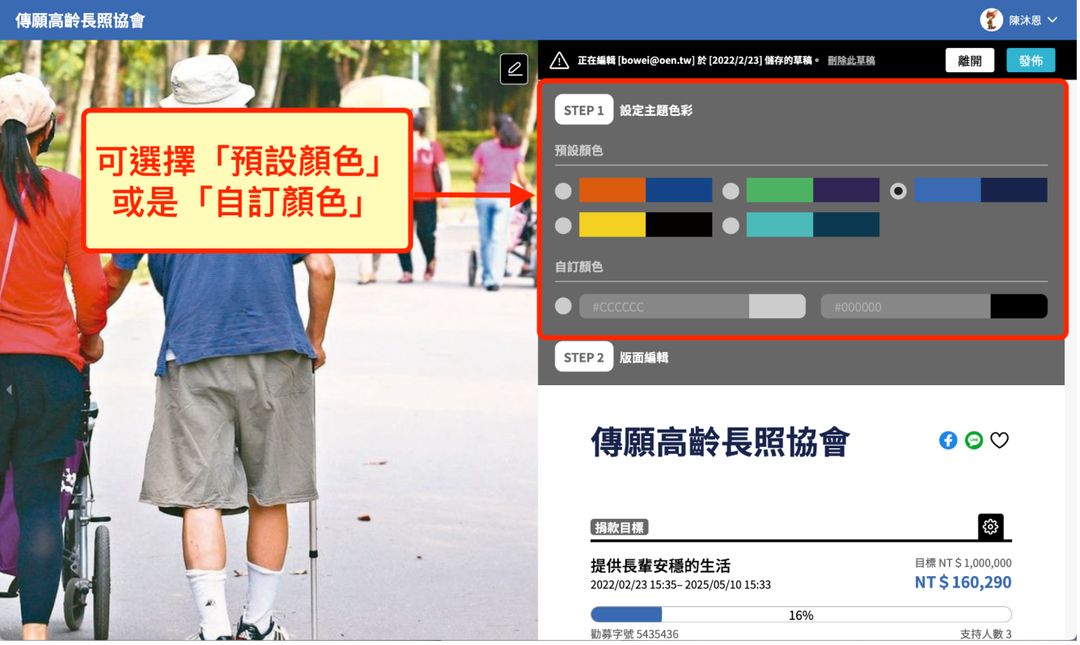 1.可選擇「預設顏色」或是「自訂顏色」