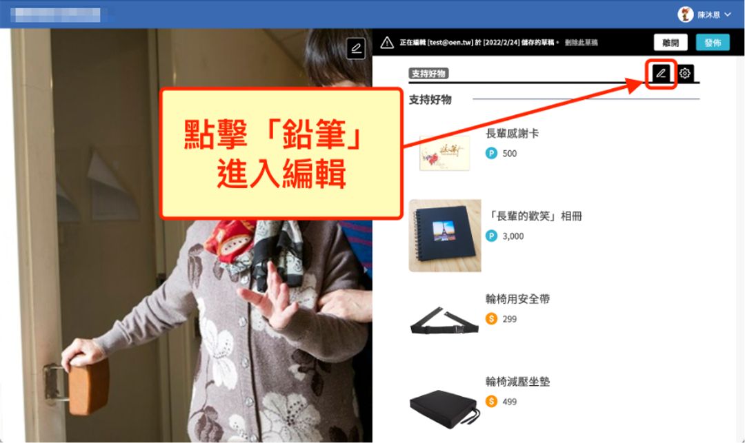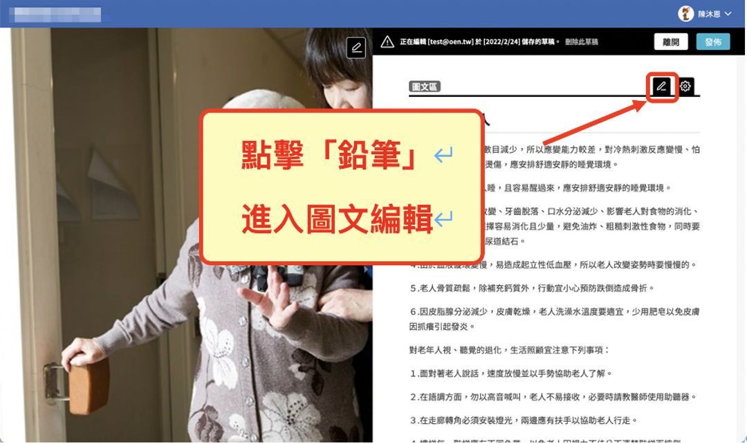 1.點擊圖文區「鉛筆」圖示,進入圖文編輯