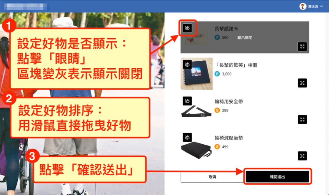 ② 設定好物排序:滑鼠直接拖曳