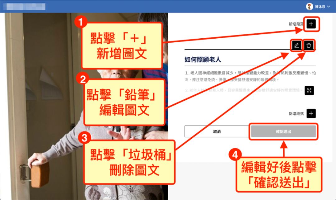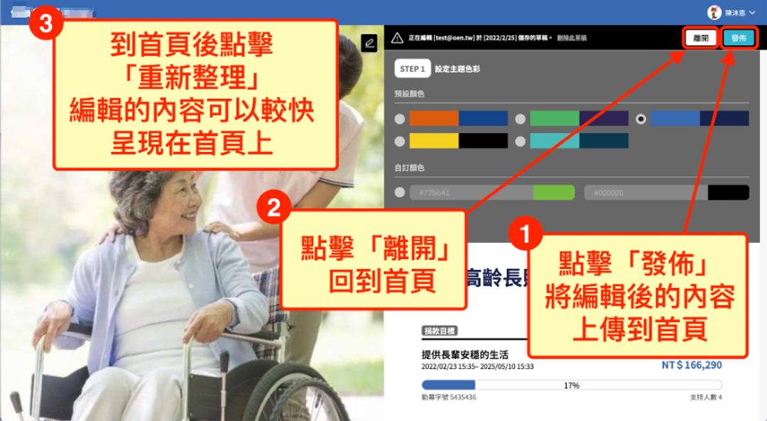 1.點擊「發佈」,上傳編輯後的內容。