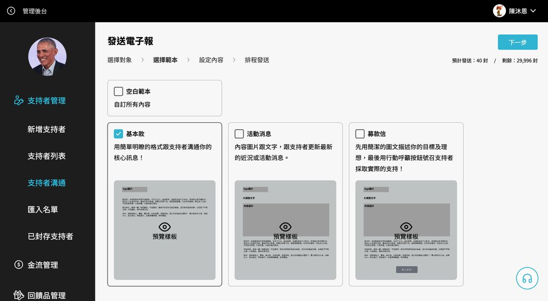 (3) 選擇好欲傳送簡訊的支持者後,點擊「傳送電子報」。