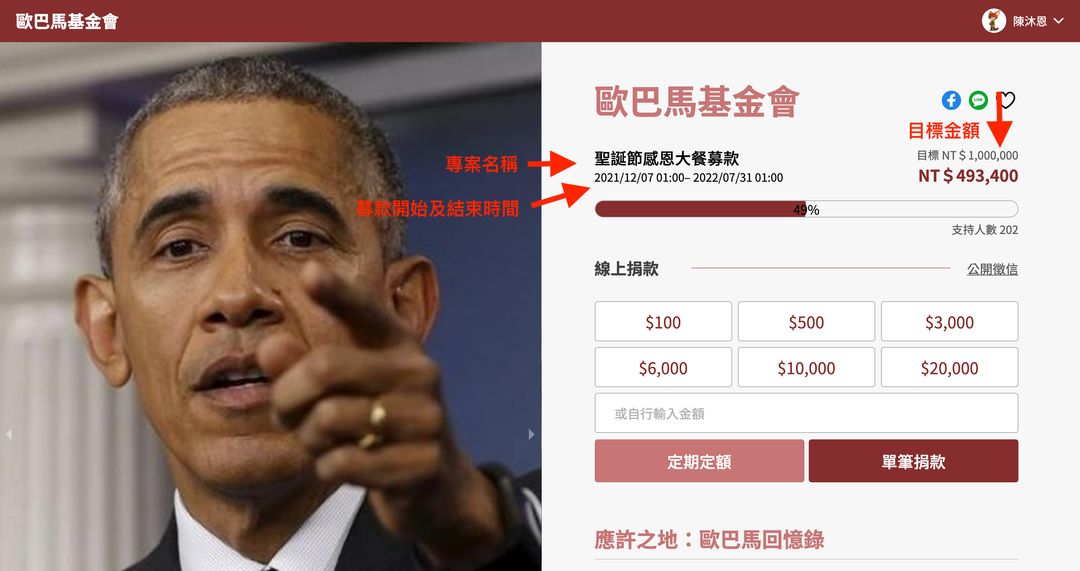 欄位對應捐款首頁的呈現方式可參考第二張圖
