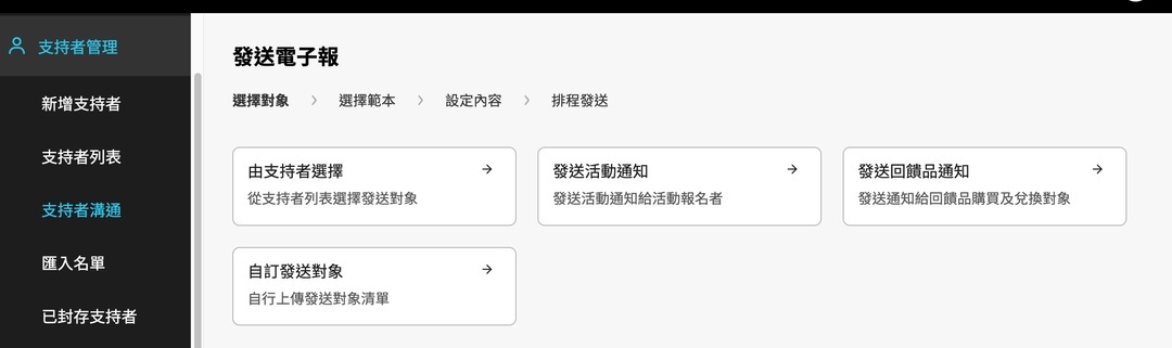 根據不同使用情境讓你們能更細微的選擇發送的對象,讓你與支持者的距離更緊密!