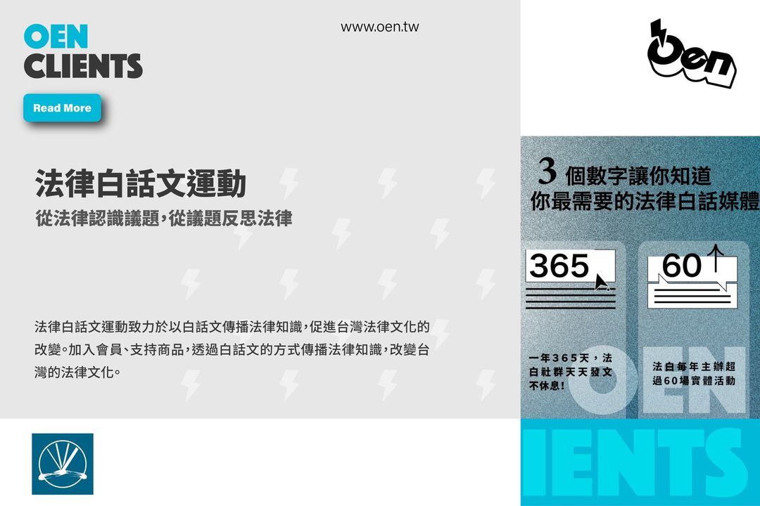 來自不同專業的法律人組成,大家有個共同的心願——透過簡單易懂的白話文來傳播法律知識,改變台灣的法律文化。希望能幫助社會大眾了解法律不再只是專家的專利,而是每個人都能理解的工具,讓大家的聲音和主張都能被法律尊重與聽見。