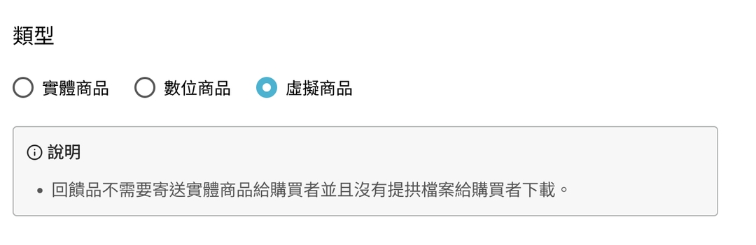 3.販售數位商品時,千萬不能誤選「虛擬商品」。